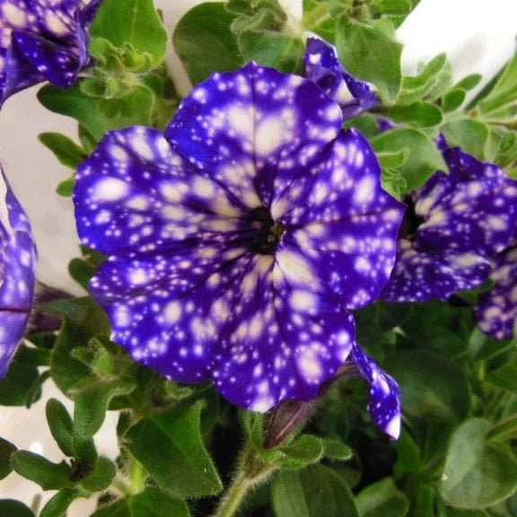 Of course. petunias are easy-to-grow annuals popular for adding lasting color to your garden or patio during the summer. Their bright purple petals are interspersed with white. and pure purple varieties certainly exist. but the starry effect of white dots on "Night Sky" is totally mesmerizing.
