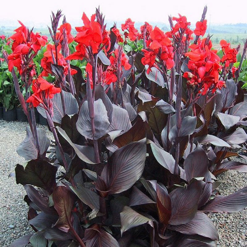 One of the impressive and eye-catching extra tall Canna Lily varieties. Australia is a tropical beauty with dark foliage and bold vermillion blooms.