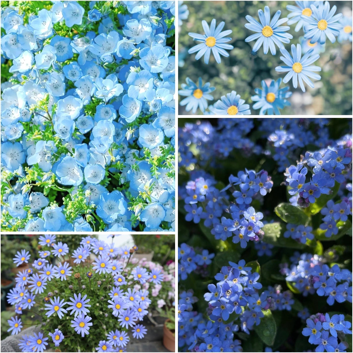 A monochromatic mix of all shades of Blue Flowers