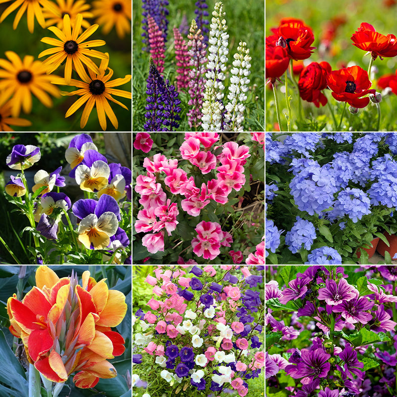 MIX CONTENTS100% Perennial: Delphinium Mix. Horned Violet. Snow in Summer. Large Leaved Lupine. Yarrow - Mix Yarrow - Red. Red Corn Poppy. Common Mallow. Indian Shot. Maiden Pink - Dianthus. English Daisy. Fringed Pink - Dianthus. Persian Coneflower. Stock Flower. Hollyhock. Oxeye Daisy. Lambs Ear. Canterbury bells