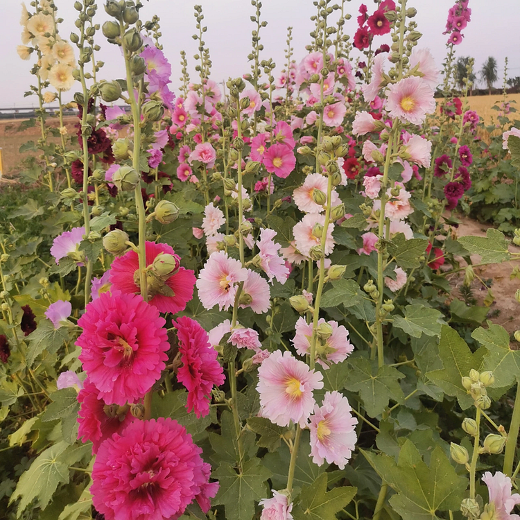 A garden classic. popularly found in English and cottage-style landscapes. Hollyhock Single Mix features a lovely range of pinks and reds blooming summer into fall.